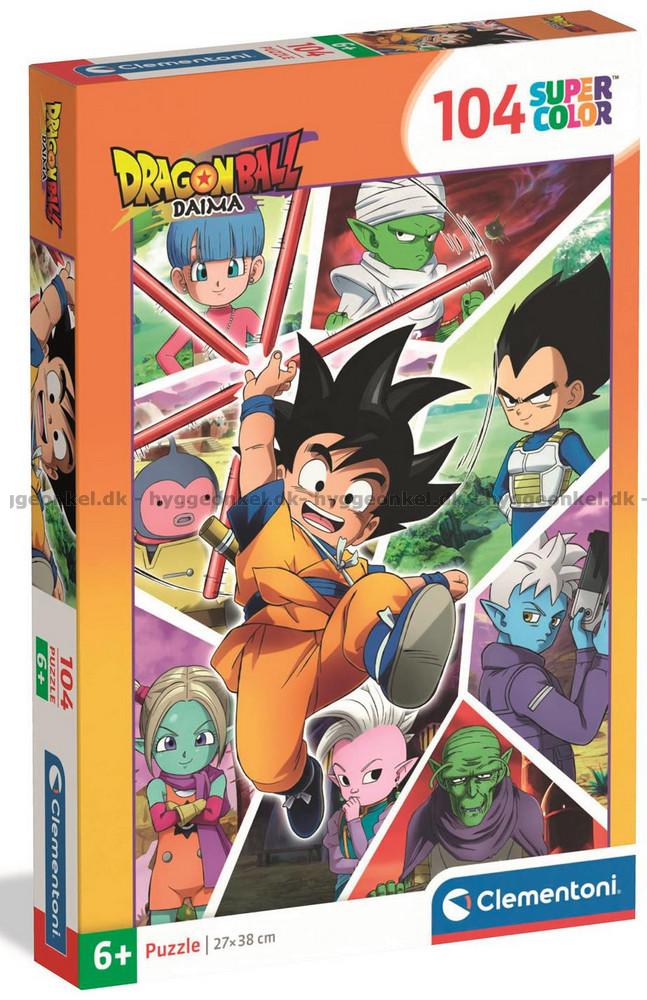 - Goku som barn, kledd i sin klassiske oransje kampdrakt med blått belte – han er omgitt av en rekke av de andre figurene fra anime-serien