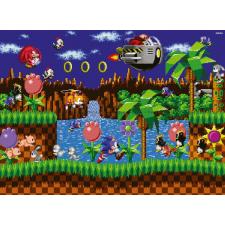 - Det er full fart over Green Hill Zone med grønne åser, palmer, fossefall og blå himmel