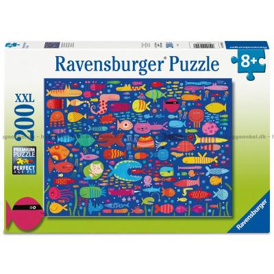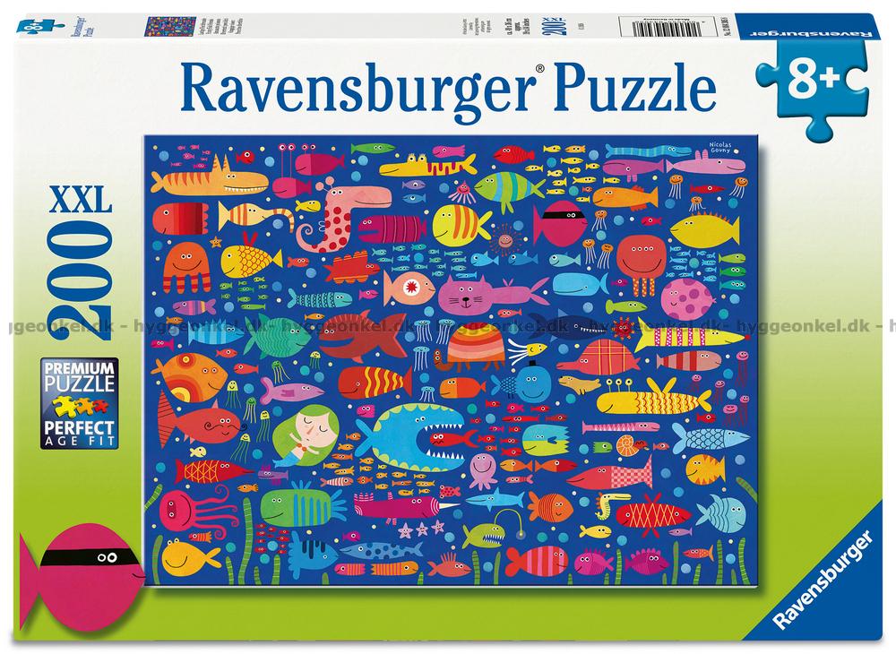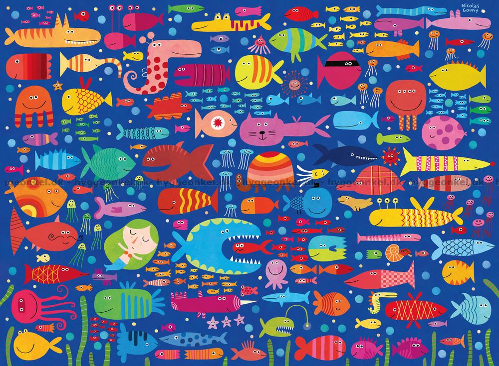 - Glade fisk og sjødyr i alle regnbuens farger svømmer rundt i den fargerike undervannsverdenen