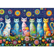 - En rekke fargerike katter som sitter side om side under en stjerneklar nattehimmel