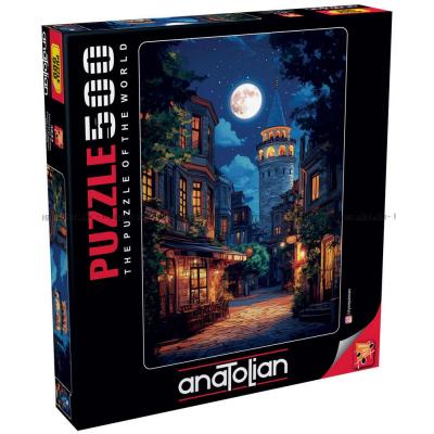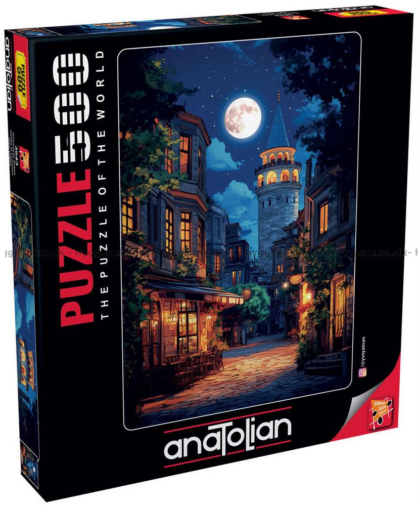 - Den brosteinsbelagte gaten slynger seg mot det opplyste tårnet