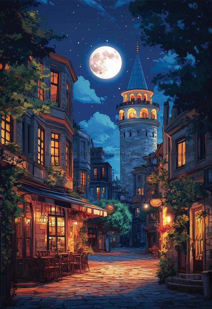- Den klare fullmånen lyser opp den koselige byen om natten