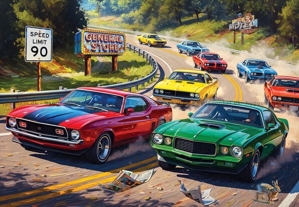 - De klassiske bilene suser nedover den svingete veien. De er omgitt av flyvende blader og støv, som understreker farten
