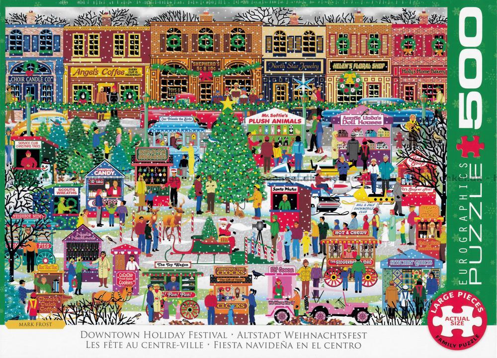 - Motivet er tegnet av Mark Frost. Dette puslespillet har større brikker. Det betyr at når motivet er lagt, så dekker det omtrent det samme som et vanlig 1.000-brikkers puslespill
