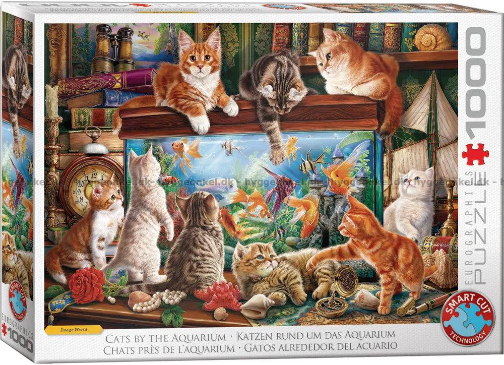 - De vakre kattene flokker seg rundt akvariet fylt med tropiske fisk