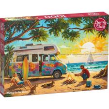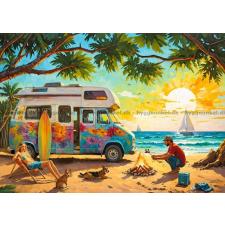 - Bobilen er parkert på stranden mens solen går ned over havet