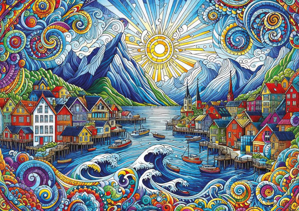 - Den fargerike kystbyen er omgitt av majestetiske fjell