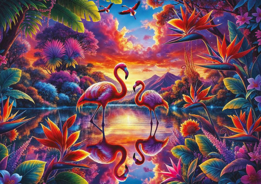 - De to flamingoene står elegant ved den speilblanke innsjøen
