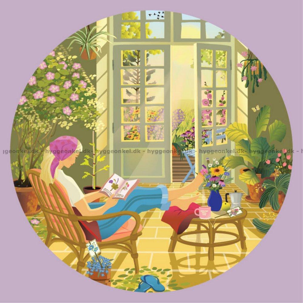 - Solstrålene treffer inn i hagestuen, hvor et stille øyeblikk nytes med en god bok