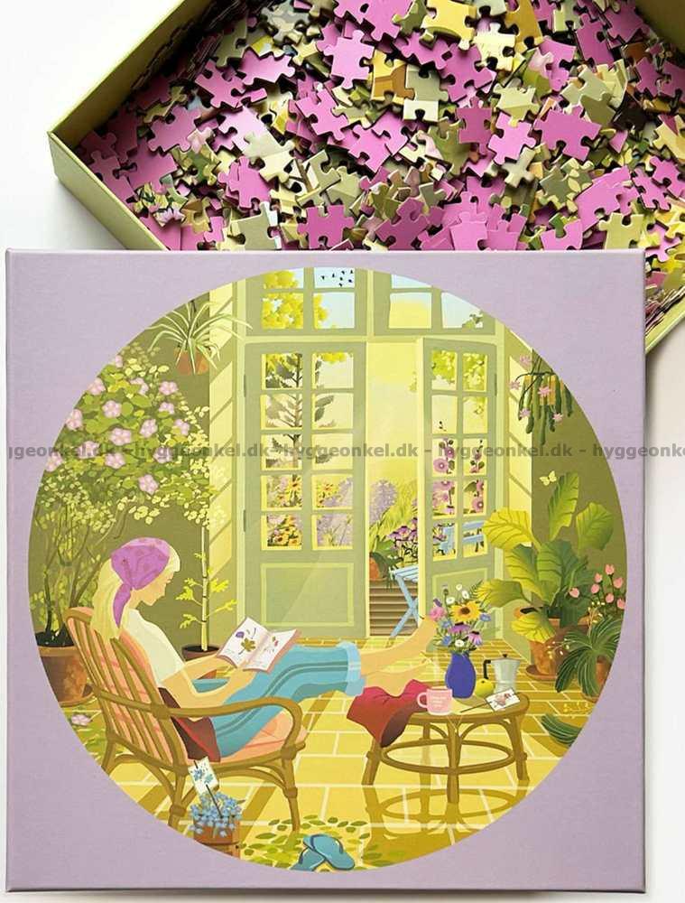 Solstreif i hagestue - Rundt puslespill, 1000 brikker