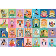 - Fargerik collage med en rekke hinduistiske figurer og guder. Flere sitter i meditative stillinger