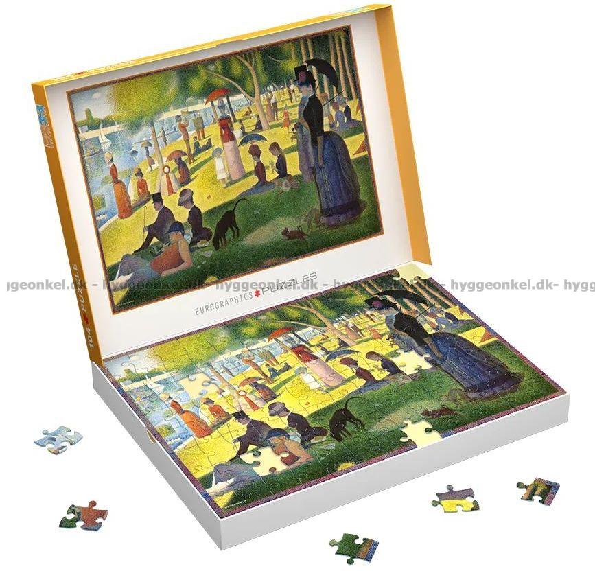 - Georges Seurat har tegnet motivet. Puslespillet har ekstra store brikker og egner seg godt for voksne som ønsker å legge puslespill med store brikker
