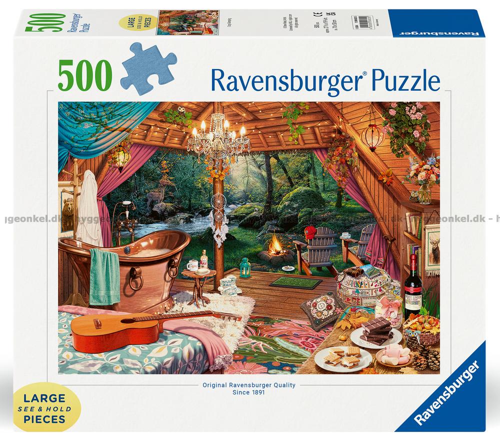 - I den vakre trehytta er man helt nær naturen. Her kan man ta et bad i badekaret, nyte god mat og musikk