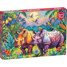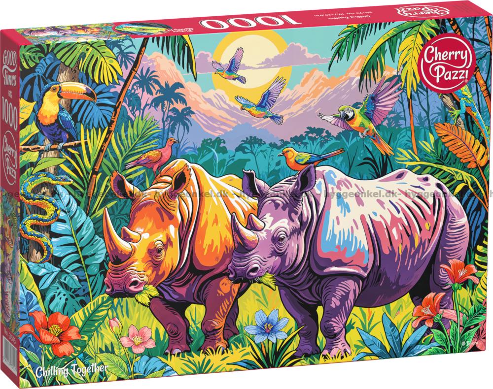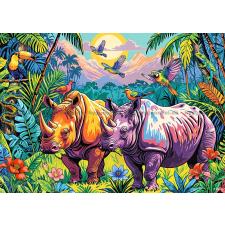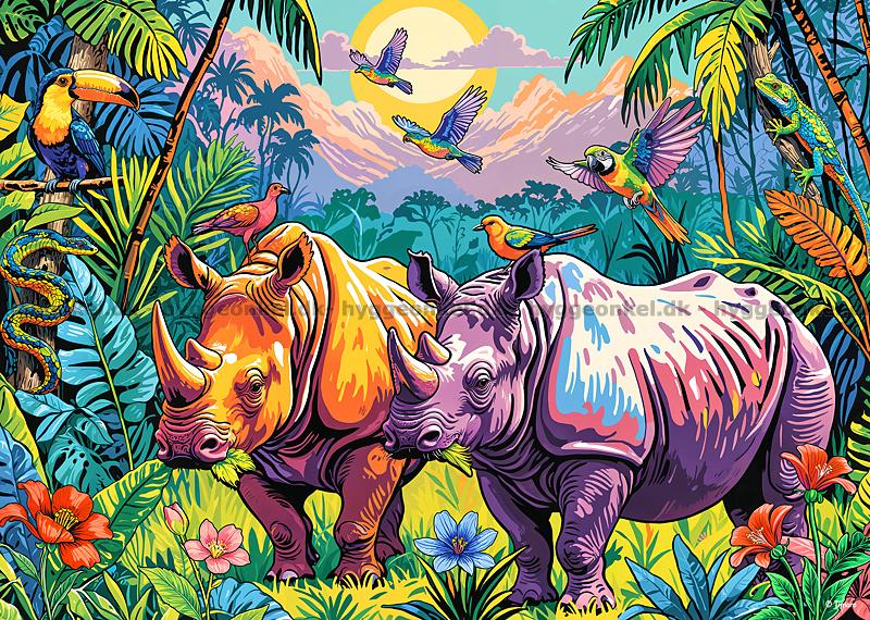 - De to neshornene står side om side midt i den fargerike og frodige jungelen