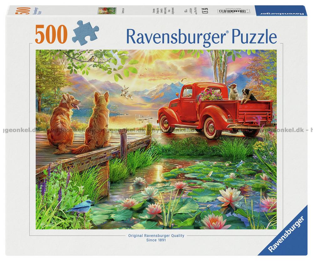 - De to hundene sitter på trebroen og ser utover innsjøen