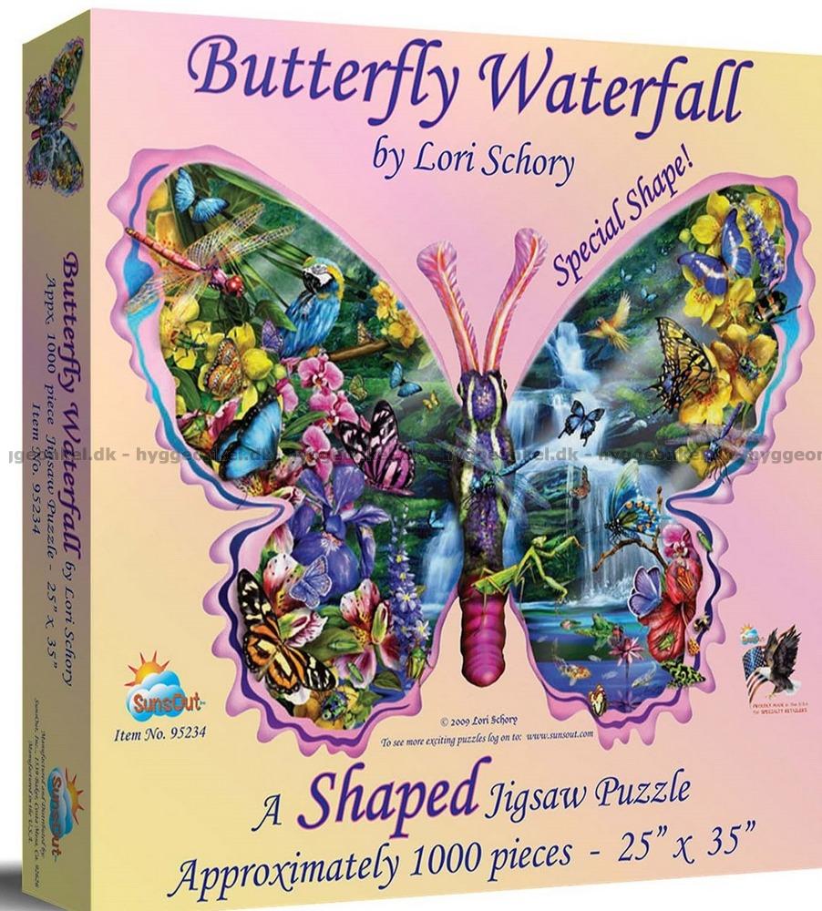 Schory: Sommerfugler ved fossefallet - Formet motiv, 1000 brikker