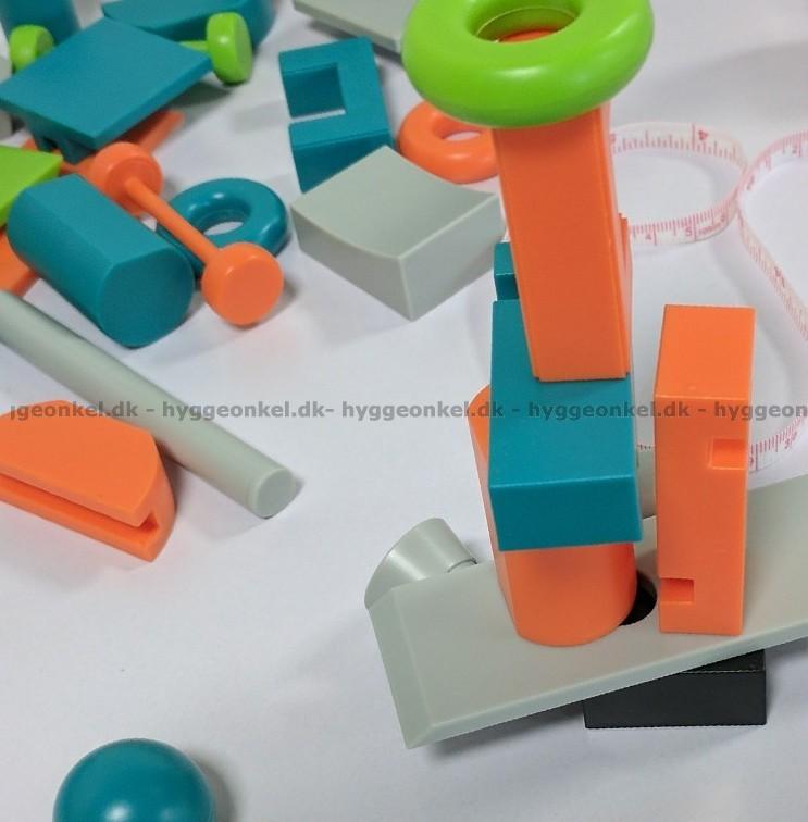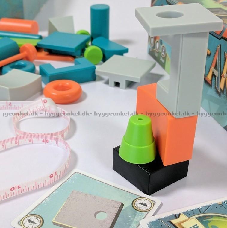 60 flotte plastbrikker, kort, markører og målebånd.