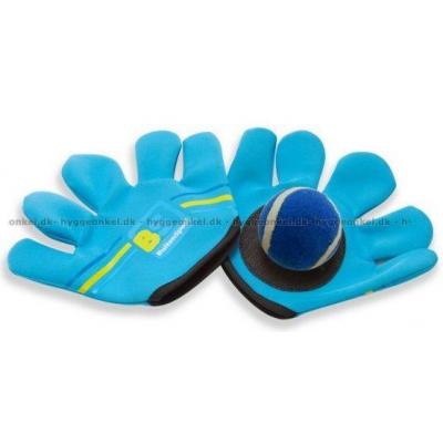 Her får du 2 hansker og 1 tennisball. Hanske-ne er 18 cm lange og 23 cm brede. De er beregnet til barn.