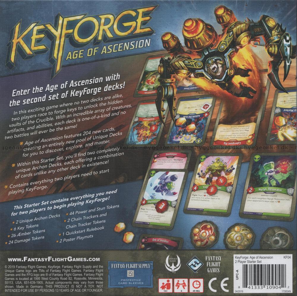 Age of Ascension, KeyForges andre tids-alder! I denne fortsettelsen av verdens første Unique Deck Game finner du nye kort som har blitt integrert med den opprinnelige kortsamlingen, så her er det et vell av nye kortsett å oppdage, utforske og mestre!