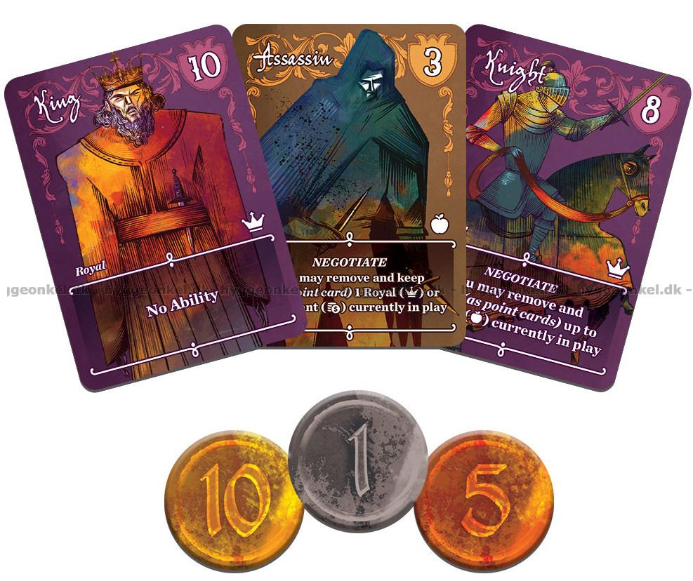 Det hele er meget enkelt, men det som gjør at Kings’ Struggle skiller seg ut, er de unike egenskapene kortene har, som fører til forhandlinger mellom spillerne. Egenskapen på kortet du har spilt kan aktiveres - eller ikke. Valget er ditt. Men husk, din velvilje er til salgs! Analyser hvem som har mest å vinne eller tape på den aktuelle egenskapen, og utnytt det maksimalt.