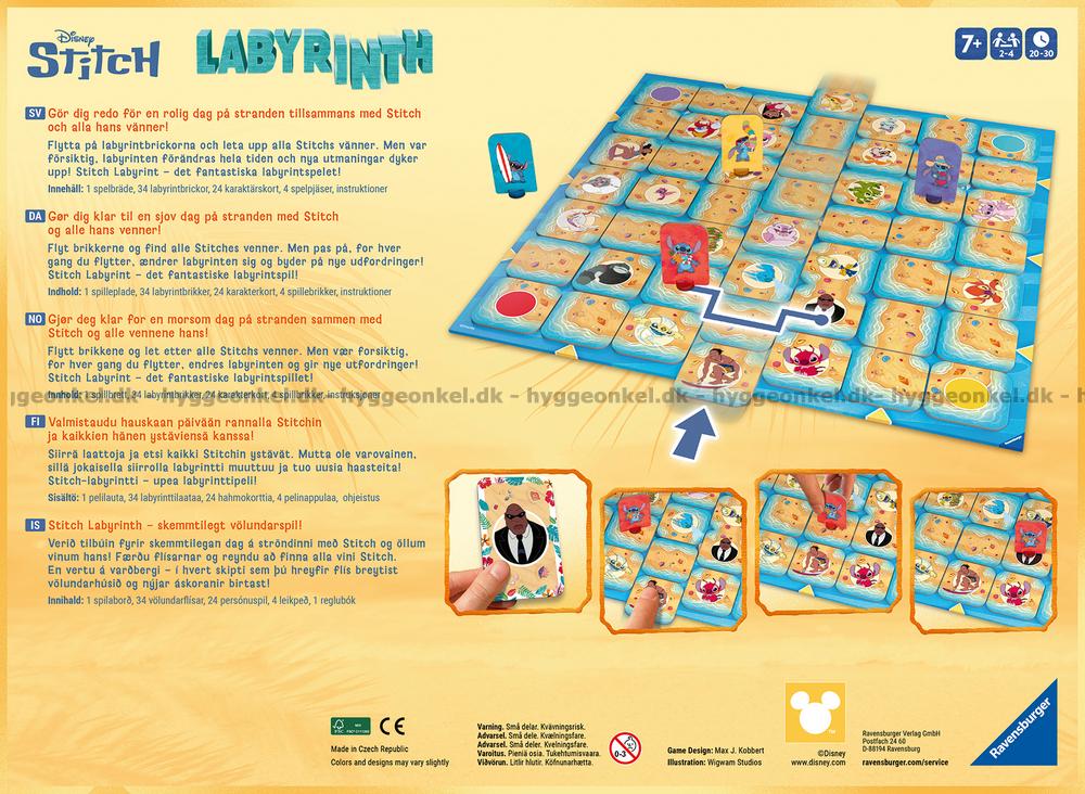 Du og dine medspillere drar på et morsomt eventyr på stranden sammen med Stitch og vennene hans. Spillet foregår i en labyrint som hele tiden endrer seg, og hvor nye veier oppstår mens andre forsvinner. Ved å skyve labyrintbrikkene rundt på spillebrettet kan du lage nye stier og forsøke å finne frem til de ulike figurene fra Stitch-universet. Samtidig kan du også blokkere motstanderne dine og gjøre veien deres vanskeligere. Målet er å finne alle figurene som vises på kortene dine, og deretter finne tilbake til startposisjonen din før de andre spillerne.