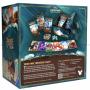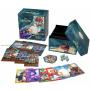 - Kassen indeholder en opbevaringsæske (selve boksen) samt 7 kortskillere, 8 booster pakker, 6 terninger og en drejeskive der kan bruges i spillet.