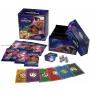 - Kassen indeholder en opbevaringsæske (selve boksen) samt 7 kortskillere, 8 booster pakker, 6 terninger og en drejeskive der kan bruges i spillet.