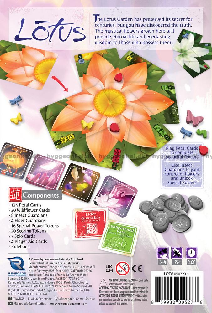 Lotus er et visuelt og strategisk fortryllende brettspill, hvor spillerne trer inn i en hemmelighetsfull hage full av magiske blomster som gir tilgang til evig liv og visdom. I dette spillet blir du utfordret til å dyrke disse kraftfulle blomstene ved nøye å velge hvor og hvordan du vil plassere dine kronblader for å få blomstene til å blomstre og til slutt høste deres energi.