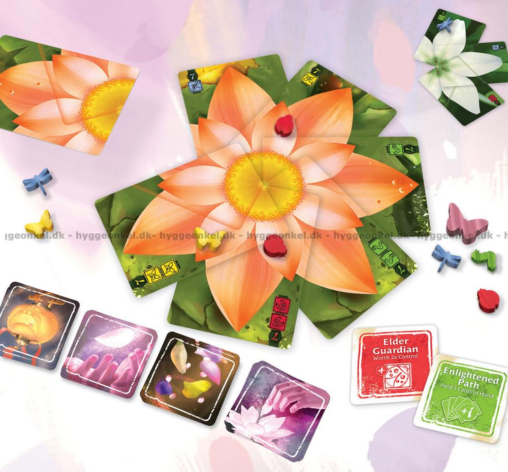 Hver spiller velger en farge og tilhørende insektvoktere som sine allierte i kampen om å dominere denne fengslende hagen. Med en bunke kronbladkort tilgjengelig og muligheten til å trekke fra en bunke med ville blomsterkort, krever hver tur at du tar avgjørelser om hvordan du best bruker dine handlinger: Spill kronblader på blomster, bytt kronblader i din bunke, eller flytt en av dine verdifulle voktere.