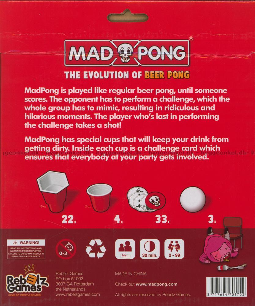 MadPong spilles akkurat som det tradisjonelle Beer Pong-spillet - hvis noen scorer, skal motstanderen drikke ølet (eller en annen valgfri drikke).