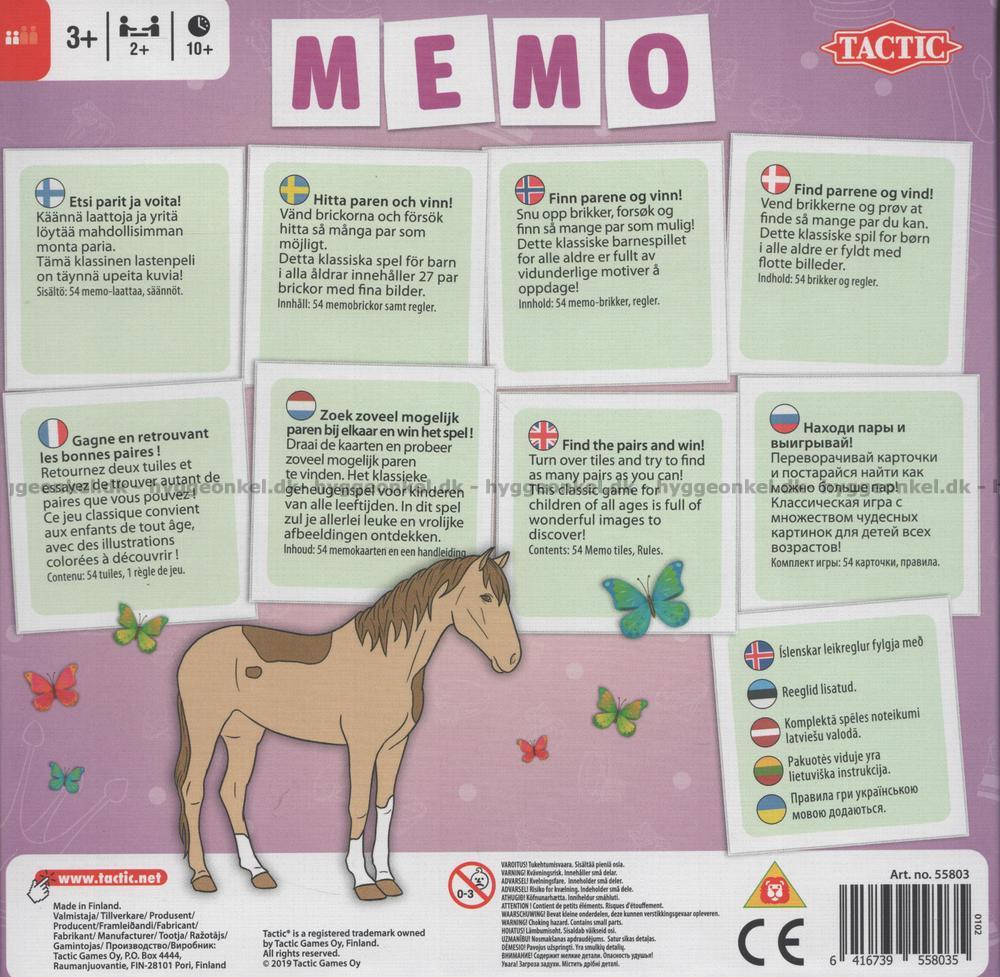 I Memo legger man brikkene med bildesiden ned på bordet. Deretter skal man etter tur vende to brikker.