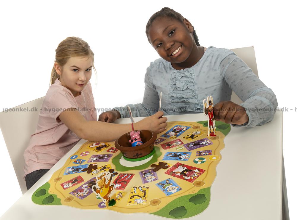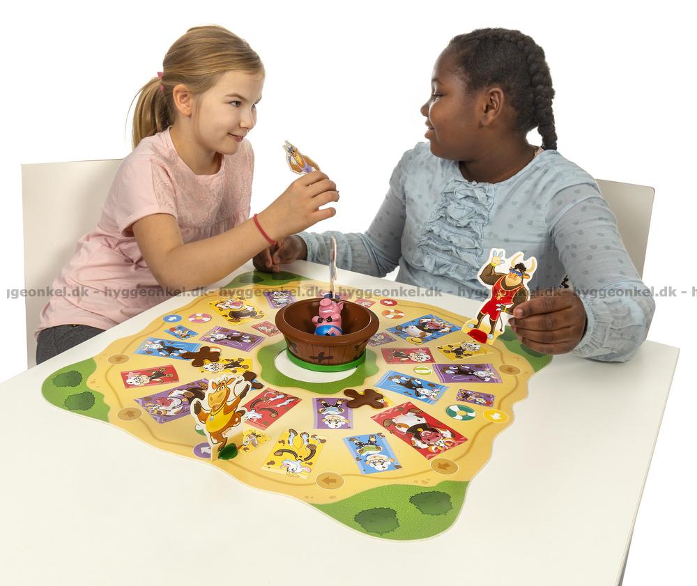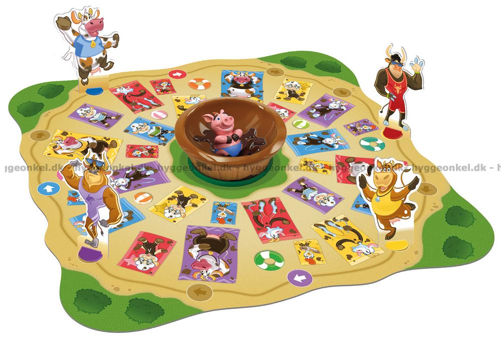 Spillebrett, 1 gris, 1 sølepytt, gjørmebrikker og spillebrikker.