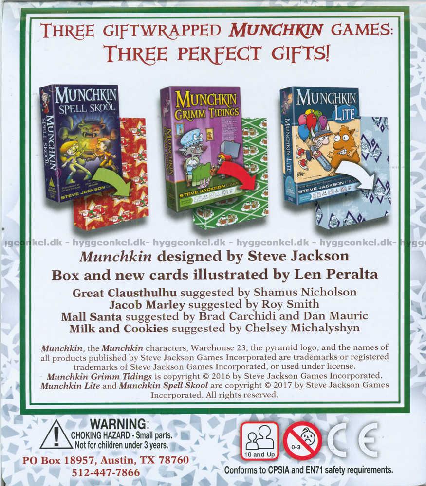 Esken inneholder tre "hard to find" Munchkin-spill.