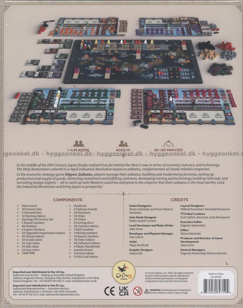 Nippon: Zaibatsu er et økonomisk strategispill som foregår under Meiji-restaurasjonen på midten av 1800-tallet, hvor Japan innleder en rask industrialisering for å ta igjen Vestens forsprang innen økonomi, industri og teknologi. Som leder av et mektig zaibatsu, et konglomerat av tett forbundne selskaper, skal du bygge opp, modernisere og optimalisere ditt industrielle imperium og bevise for keiseren at nettopp ditt konsern er det mest fremsynte og suksessrike.