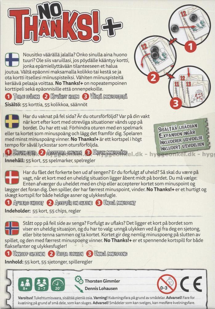 No Thanks er et morsomt og annerledes kortspill med enkle regler og en svært høy "la oss ta en omgang til"-faktor.