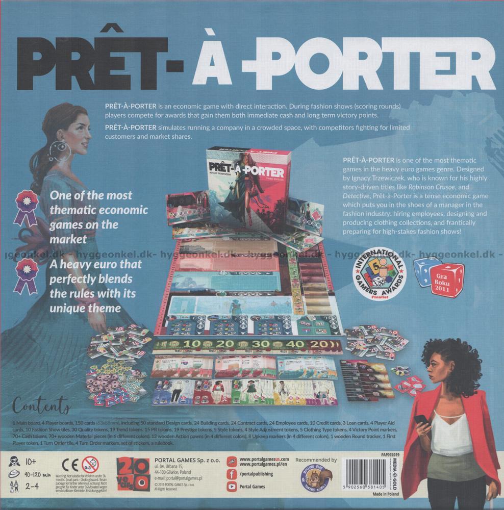 Prêt–à–Porter er et økonomibasert strategispill som gir hver spiller kontrollen over et moteselskap, og målet er å nå toppen. Spillet strekker seg over et år (12 måneder - og runder), inndelt i fire kvartaler som hvert ender med et moteshow. For å forberede seg på det neste showet skal spillerne skrive nye kontrakter, utvide selskapet med ekstra fasiliteter, hyre inn nye ansatte og skape flotte designs. Men det er ikke så enkelt som det høres ut! Hver runde skal du nemlig betale selskapets stigende utgifter - lønn til de ansatte, leie av bygninger, rente på lån, m.m. Lykke til!
