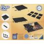 Brettet settes sammen av seks plastplater. Platene kan pakkes sammen når man ikke skal bruke brettet.