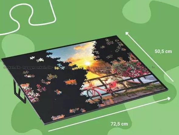 Her får du et svært flott brett i plast hvor du kan legge et puslespill på opptil 1000 brikker. Husk å sjekke størrelsen i centimeter på det motivet du ønsker å legge. Selv om puslespillet er på 1000 brikker er det stadig ikke sikkert at det passer med denne matten. Størrelsen på puslespill varierer fra produsent til produsent.