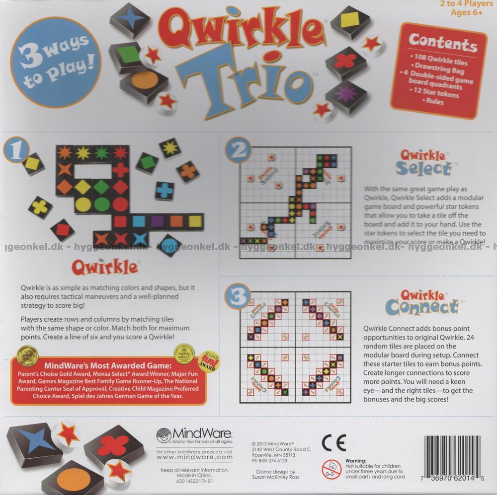 Det er kun tre av hver slags brikke med i spillet, så hold øye med hvilke som allerede ligger på brettet for å optimere spillet ditt.