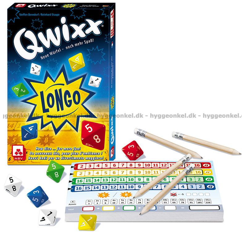 Qwixx Longo-utgaven skiller seg ut ved å ha et lengre poengark og 8-sidede terninger, i tillegg til at hver spiller har to individuelle lykketall.