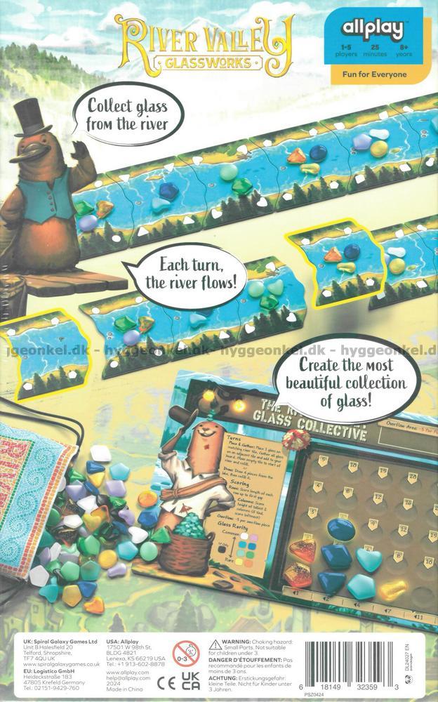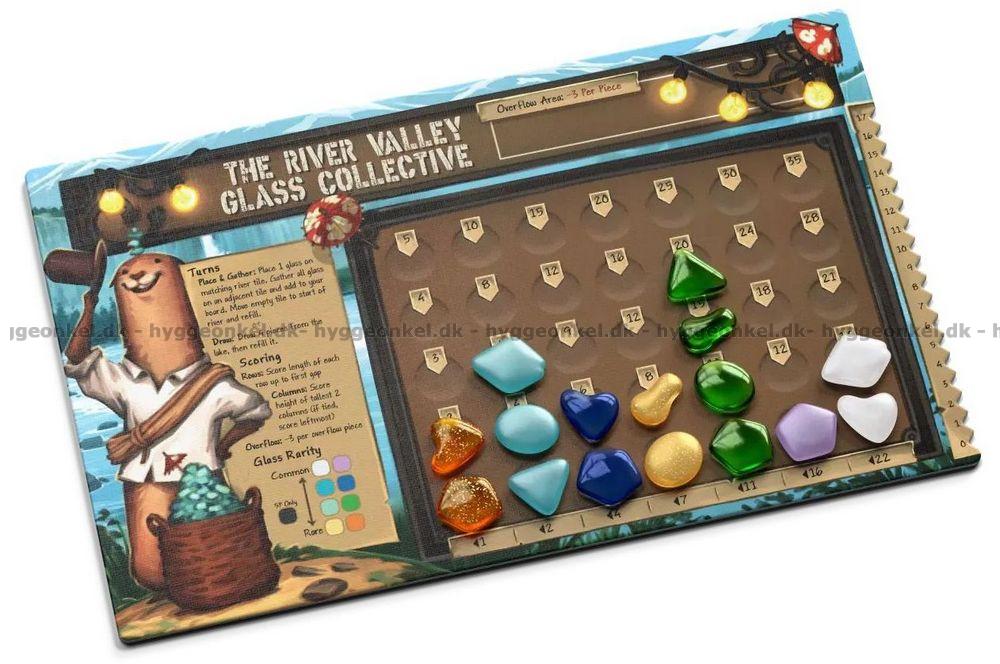 Nå er det din tur til å åpne ditt eget glassverksted. Spillet handler om å plassere glass i elven på taktisk vis, samle dem inn og bruke dem til å fylle ut rader og kolonner på din personlige spilleplate.