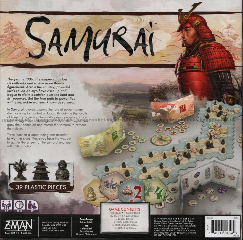 I hvert spill kjemper dere om makten over borgerne ved å plassere deres tropper (i form av brikker) strategisk. Kjemp om å få makten over hver av de tre kastene. Den som har innflytelse over flest kaster ved spillets avslutning, vinner spillet og makten over det føydale Japan!