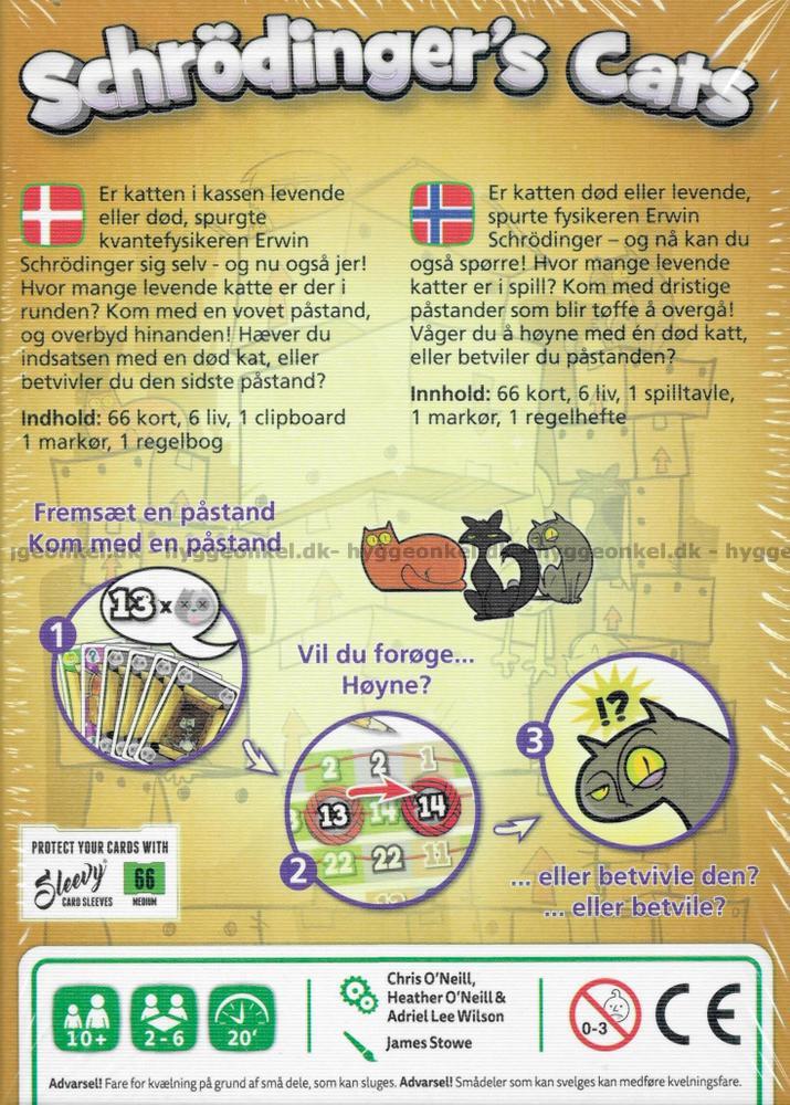 Hver runde blir kortere og mer intens, helt til det bare står én spiller igjen som den siste katten. Schrödinger’s Cats er et raskt, taktisk og festlig bløffspill, hvor både strategi og humor går hånd i hånd.