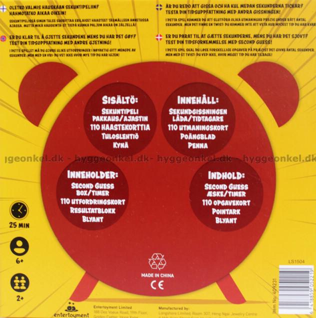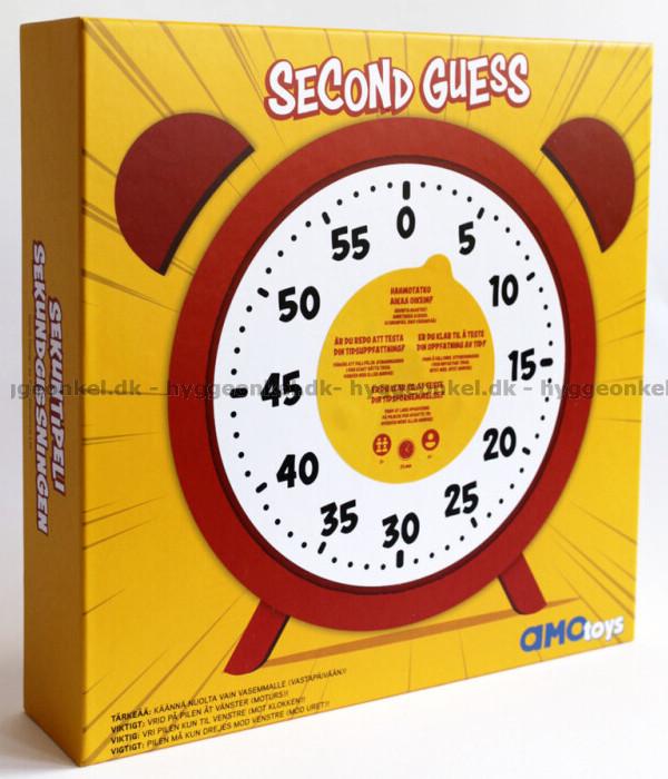 Second Guess er et morsomt og nervepirrende spill for hele familien, hvor presisjon og tidsfølelse står i fokus. Spillet går ut på å stoppe timeren så nær et bestemt antall sekunder som mulig, noe som fremgår av oppgavekortene.
