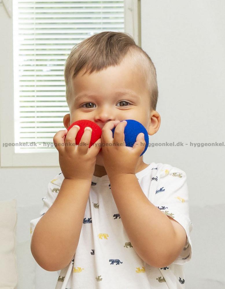 4 skumgummiballer - med en diameter på 6 cm - til å kaste på boksene.
