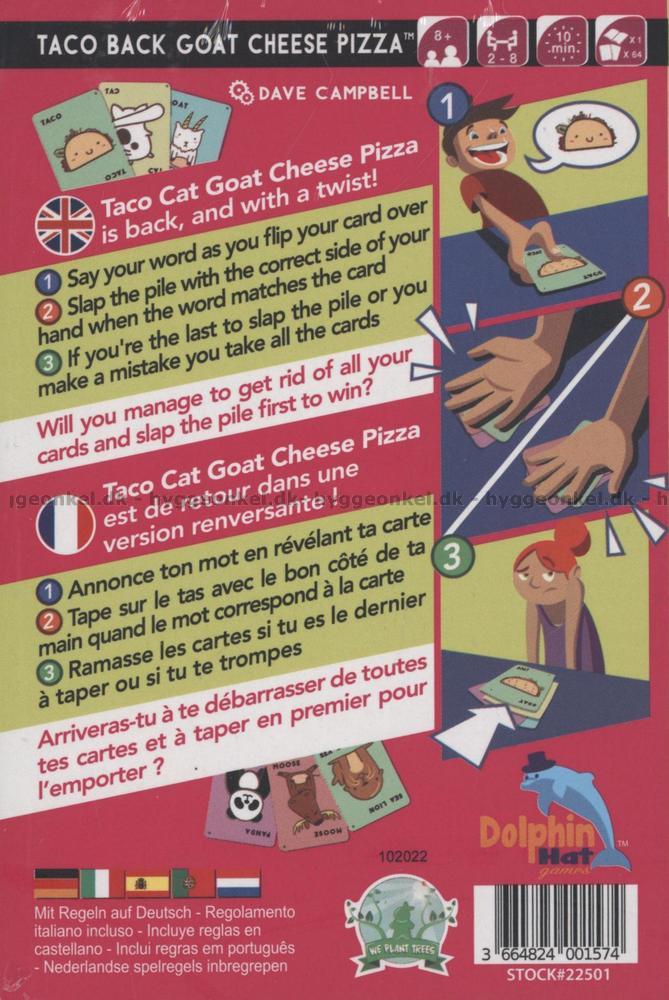 I dette kortspillet bytter spillerne på å si "TACO, CAT, GOAT, CHEESE, PIZZA".