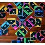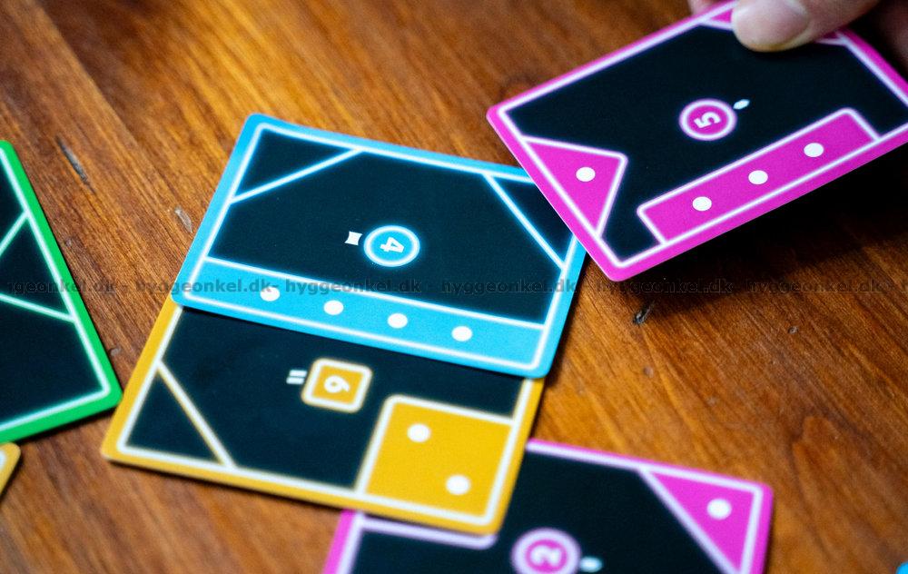 Du kan snu og vende på kortene, men kun ett kort kan spilles om gangen, og plasseringen må være helt presis – hvis formen ikke passer, teller det ikke. Det er visuelt og intuitivt, men rommer likevel masse strategi og vurdering.
