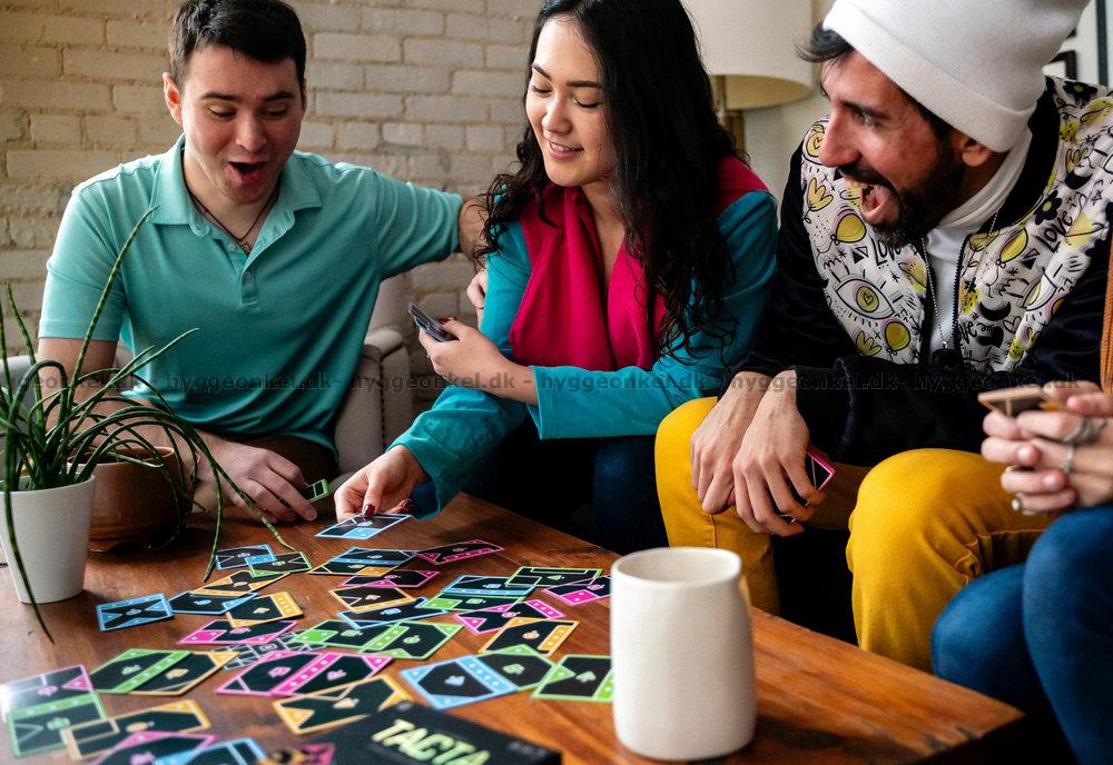 Når du tror du ikke har flere gyldige trekk, kan du legge kortet hvor som helst – men det kan få konsekvenser for poengsummen din. Tacta kan spilles både i vanlige og mer hektiske varianter, og uansett hvilken versjon du velger, er det et spill som kombinerer tempo, taktikk og et glimt i øyet.