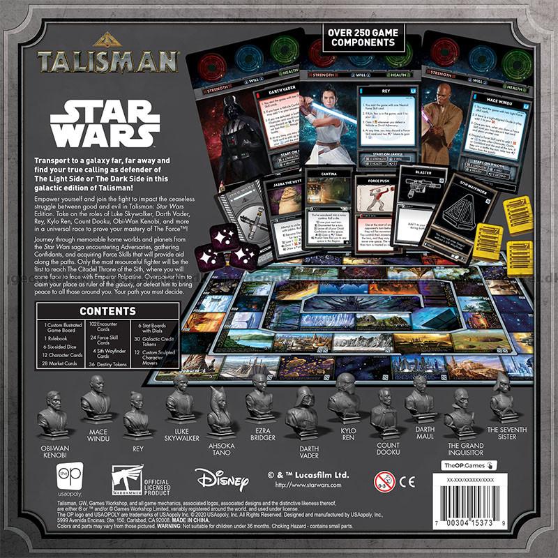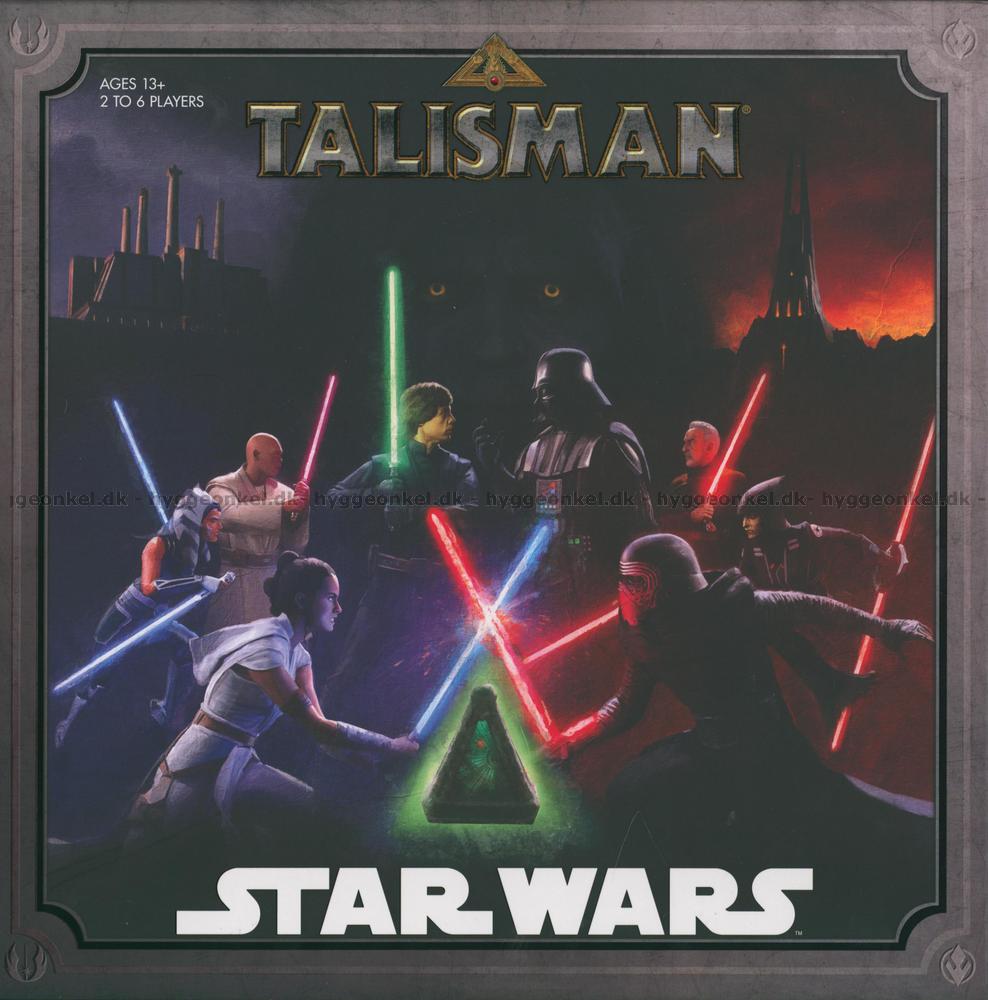 Spillebrett, kort, terninger og miniatyrfigurer i plast.