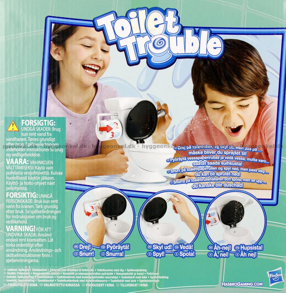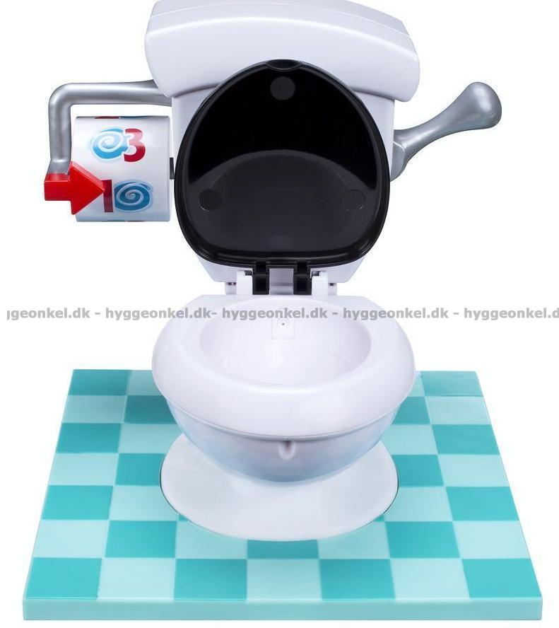 Er du uheldig, blir du truffet av vannstrålen fra doen, og da er du ute! Den siste som sitter igjen til slutt, har vunnet.